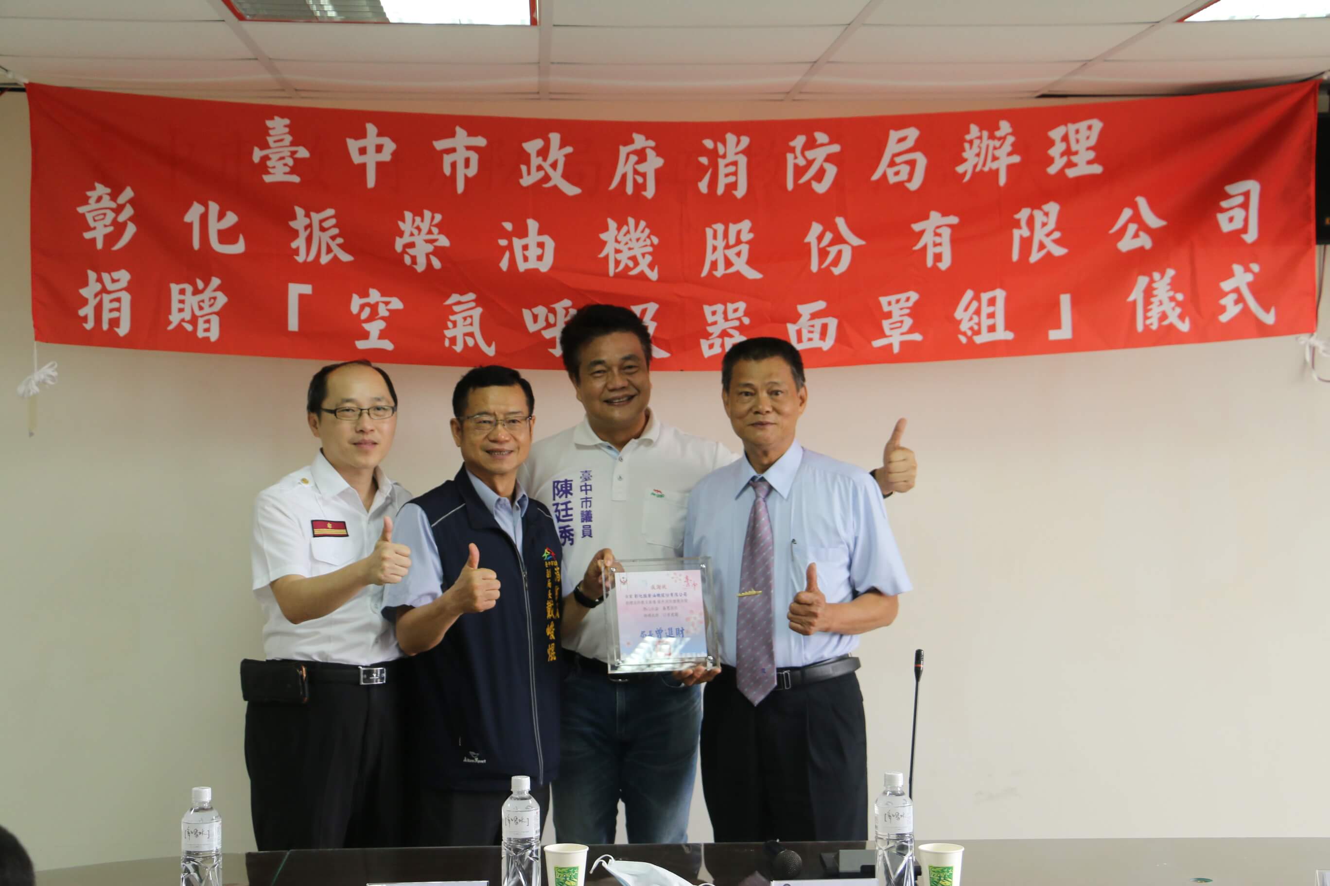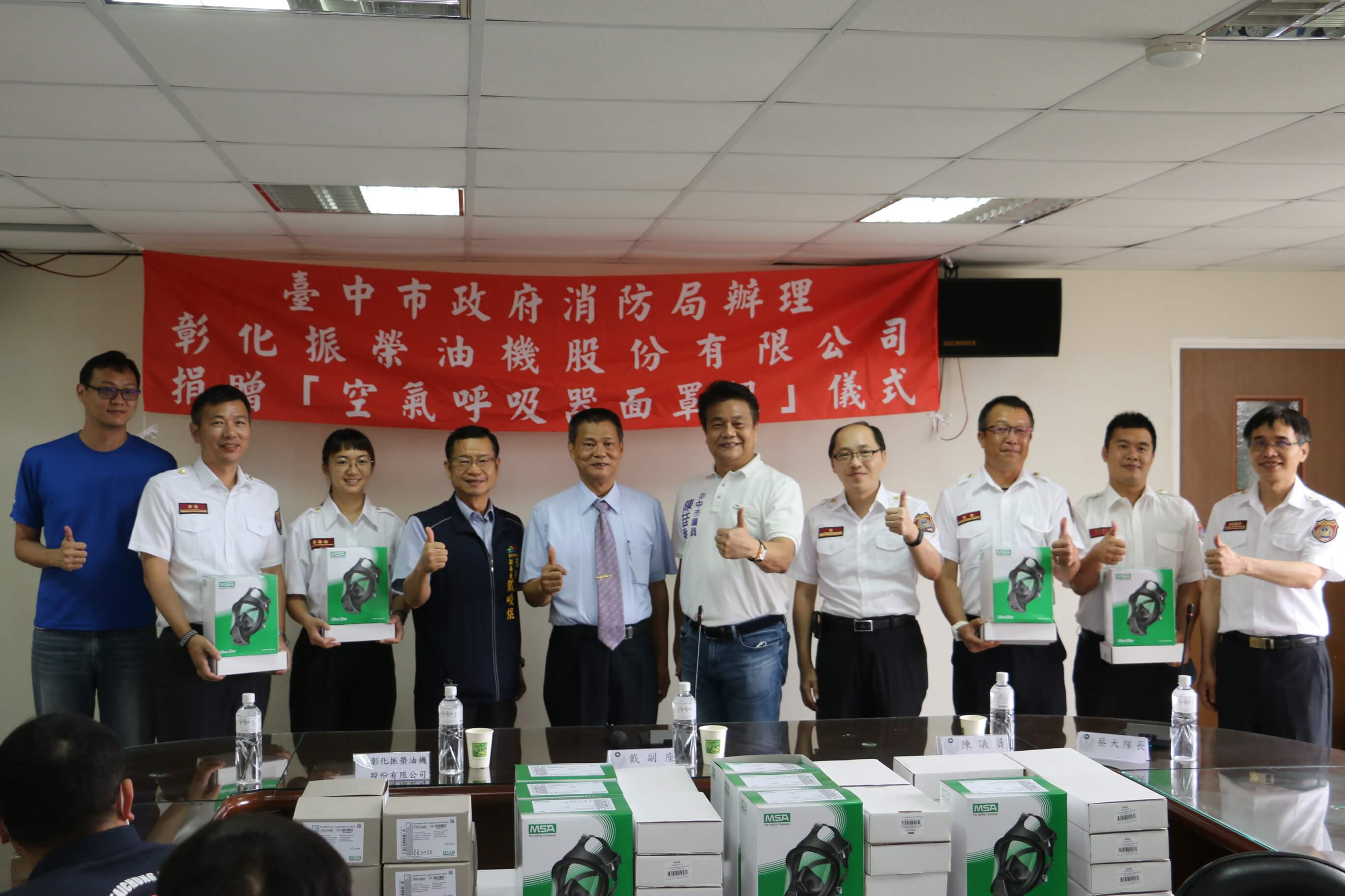 Chen Ying Oil Machine Co., Ltd. donated air respirator masks to the Fouth Squad Emergency and Rescue Corps of Fire Bureau of Taichung City Government.